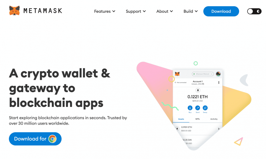 ไปที่เว็บไซต์ของ MetaMask และดาวน์โหลดกระเป๋าเงิน