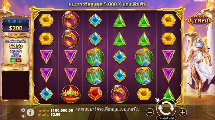 Gates of Olympus เป็นเกมเว็บสล็อตยอดนิยมจากค่าย Pragmatic Play ที่มาพร้อมธีมเทพเจ้ากรีก โดยมี Zeus เป็นตัวละครหลักของเกม จุดเด่นของเกมนี้คือระบบจ่ายเงินแบบ “Pay Anywhere” ที่ไม่จำเป็นต้องเรียงสัญลักษณ์บนเพย์ไลน์ก็สามารถชนะรางวัลได้ และยังมีฟีเจอร์ตัวคูณ (Multiplier) ที่เริ่มตั้งแต่ x2 ไปจนถึง x500 ซึ่งช่วยเพิ่มมูลค่าของเงินรางวัลให้สูงขึ้นแบบทวีคูณ